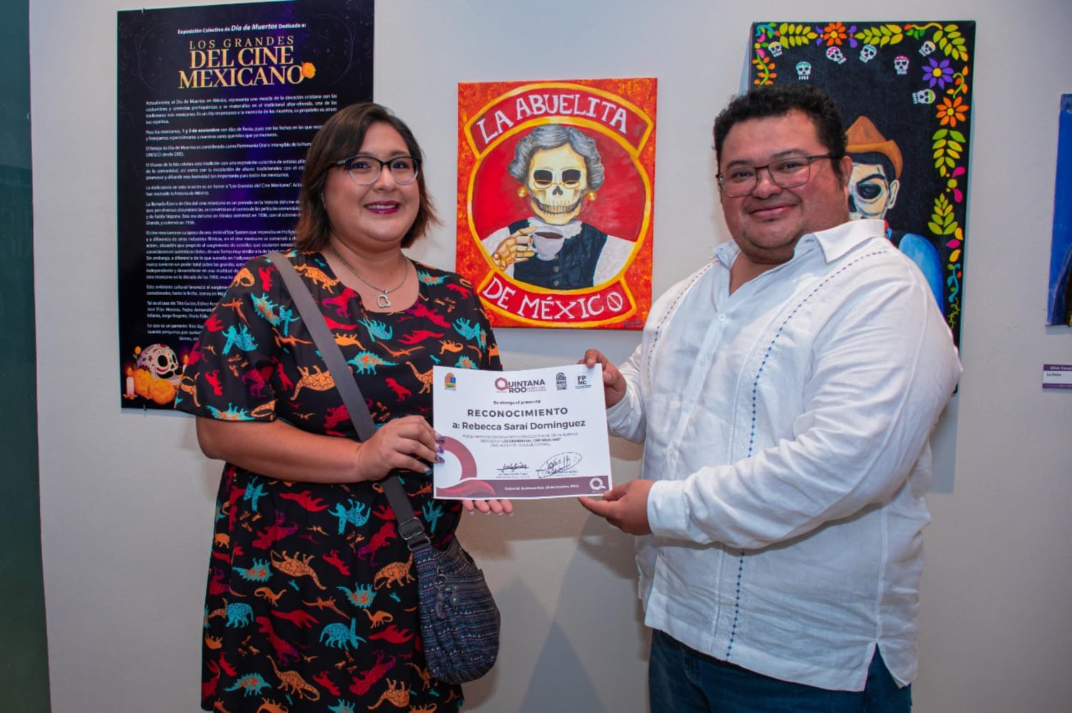 PODER Y CRÍTICA | REDACCIÓN | Como parte de las actividades que la Fundación de Parques y Museos de Cozumel (FPMC) preparó para conmemorar el Día de Muertos, la noche de este viernes se inauguró la exposición colectiva “Los Grandes del Cine Mexicano” y “Prefiero morir borracho para no sentir tan gacho”, del maestro Carlos Tello, en el centro museográfico, donde también se instaló el altar de muertos y el Hanal Pixán en la Casa Maya.