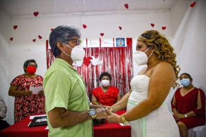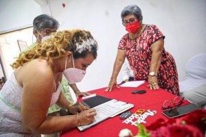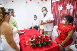 Isla Mujeres, Q. Roo, Viernes 12 de Febrero de 2021, poderycrítica.- Con el fin de brindarles certeza jurídica y con ello los beneficios que las leyes mexicanas proporcionan, como parte de las ya tradicionales “Bodas Colectivas”, el gobierno de Isla Mujeres que encabeza Juan Carrillo Soberanis, a través del Registro Civil y en conjunto con el sistema municipal para el Desarrollo Integral de la Familia (DIF), formalizó la unión de ocho parejas en la ínsula.