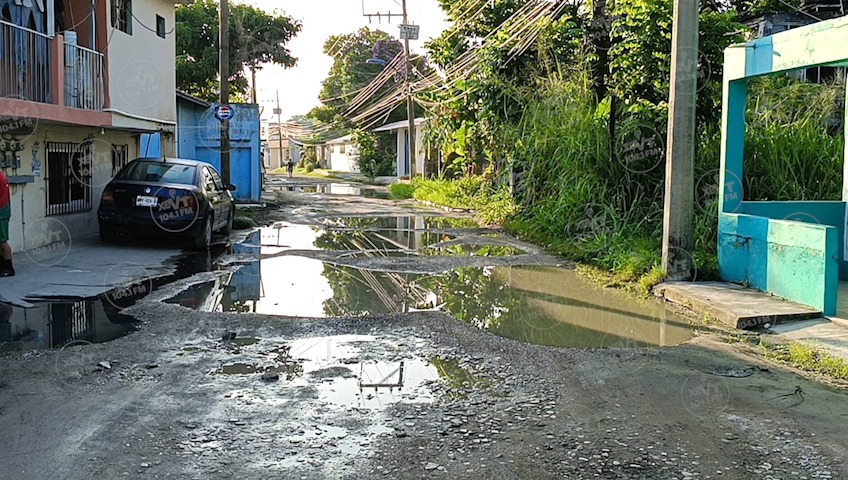 La calle Orbelín Castro Vidal de la colonia Miguel Hidalgo, segunda sección, se encuentra llena de baches y charcos de aguas negras, es una añeja demanda que desde la primera campaña, hace cuatro años, Yolanda Osuna se comprometo a solucionar.