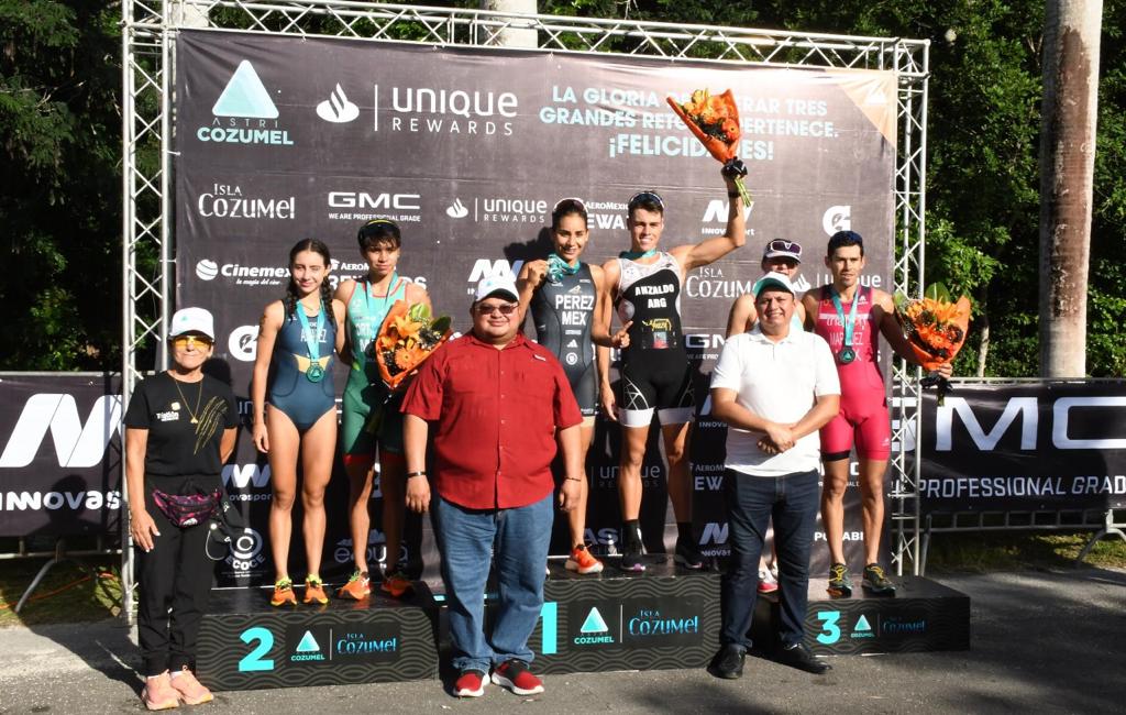 El director de la FPMC, estuvo acompañado de la directora de Deportes, Rosa Elena Zapata Vázquez y el representante del Consejo de Promoción Turística de Quintana Roo (CPTQ) en Cozumel, Pablo Aguilar Torres, para entregar las medallas a los ganadores de la categoría Elite Rama Varonil que fueron: Iván Anzaldo, de Argentina, con un tiempo de 55 minutos y 48 segundos; el segundo lugar Erick Ortigoza, de México, con un tiempo de 55 minutos y 57 segundos y el tercero Miguel Márquez, también de México, con 56 minutos y 05 segundos.