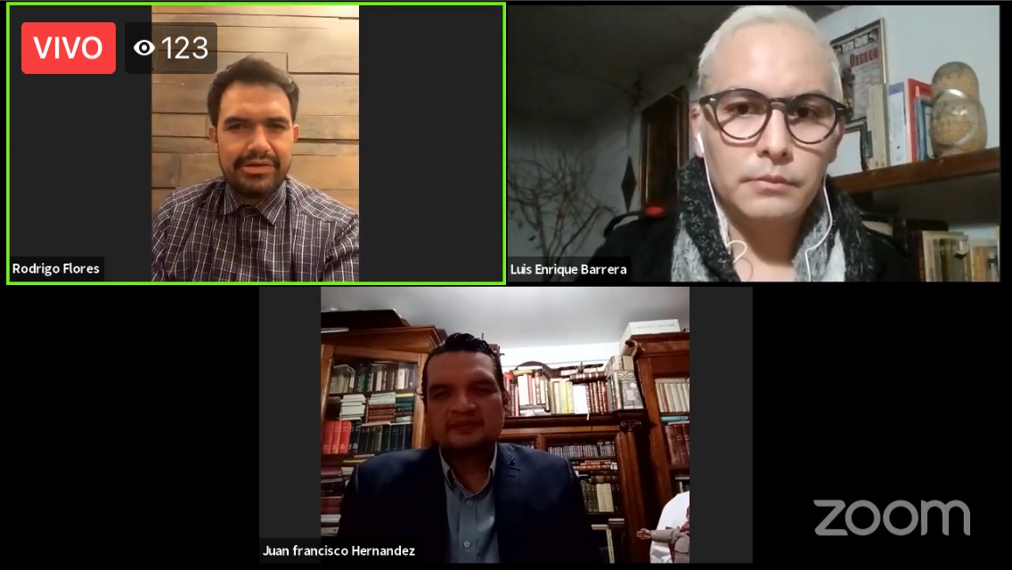 En esta ocasión, los invitados hablaron sobre el teatro novohispano de la evangelización en México como metodología de enseñanza. Participaron en la charla Luis Enrique Barrera y Juan Francisco Hernández, directores teatrales con trayectorias muy importantes.