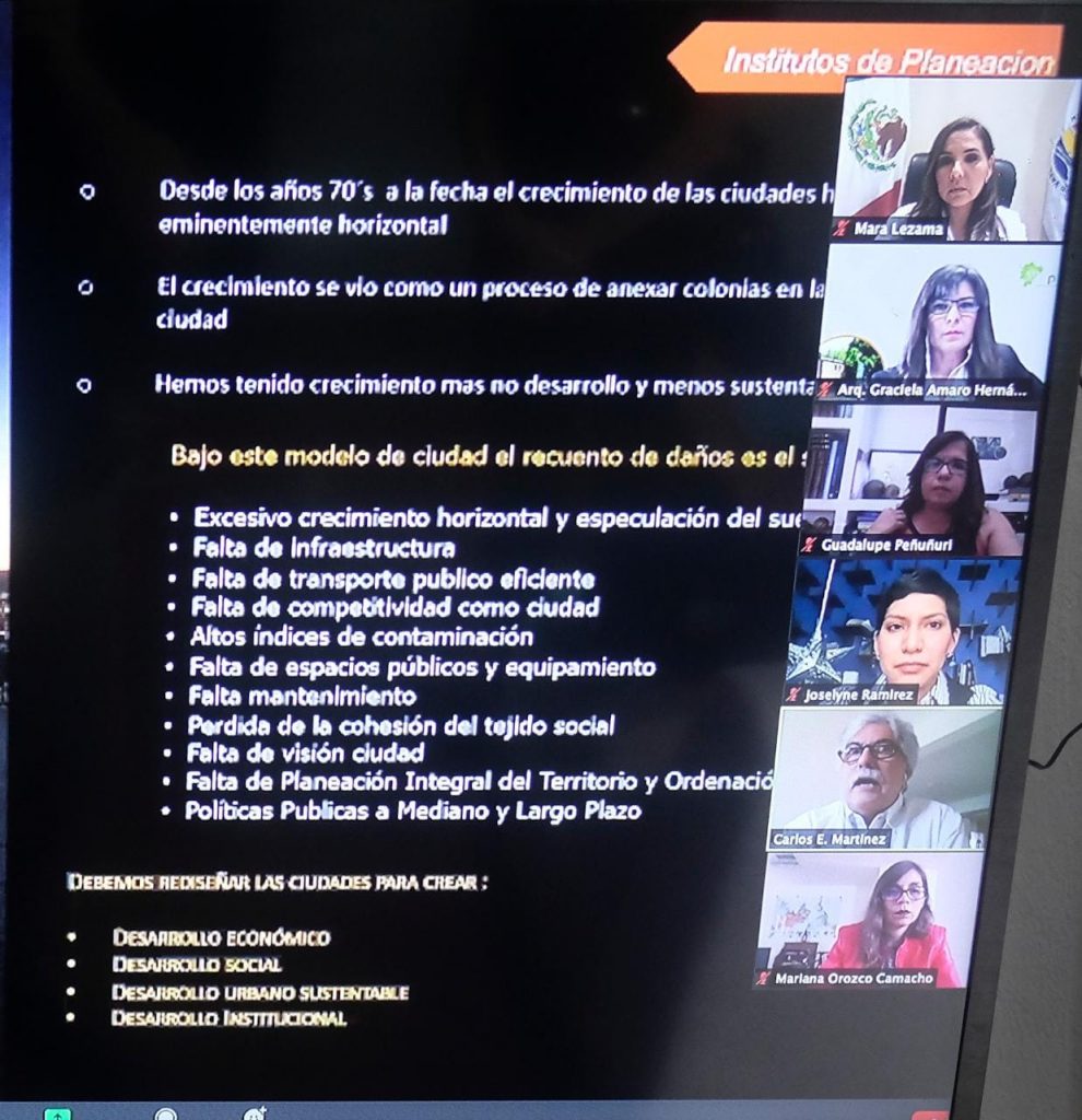 En dicho foro, que se lleva a cabo durante dos días y cuyo objetivo es abrir una amplia conversación con distintos sectores sociales para identificar los retos y oportunidades de desarrollo de los Institutos de Planeación en el país, la Presidente Municipal, Mara Lezama, compartió el espacio con el Secretario de Desarrollo Agrario, Territorial y Urbano, Román  Meyer  Falcón; diputados y coordinadores federales; así como sus homólogos de otros municipios.
