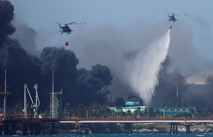 PODER Y CRÍTICA | REDACCIÓN | La Secretaría de Defensa Nacional (Sedena) informó que cuatro aeronaves de la Fuerza Aérea Mexicana (FAM) han participado en un puente aéreo para coadyuvar en la sofocación de un incendio en la Refinería Supertanqueros, la cual se ubica en Matanzas, Cuba.
