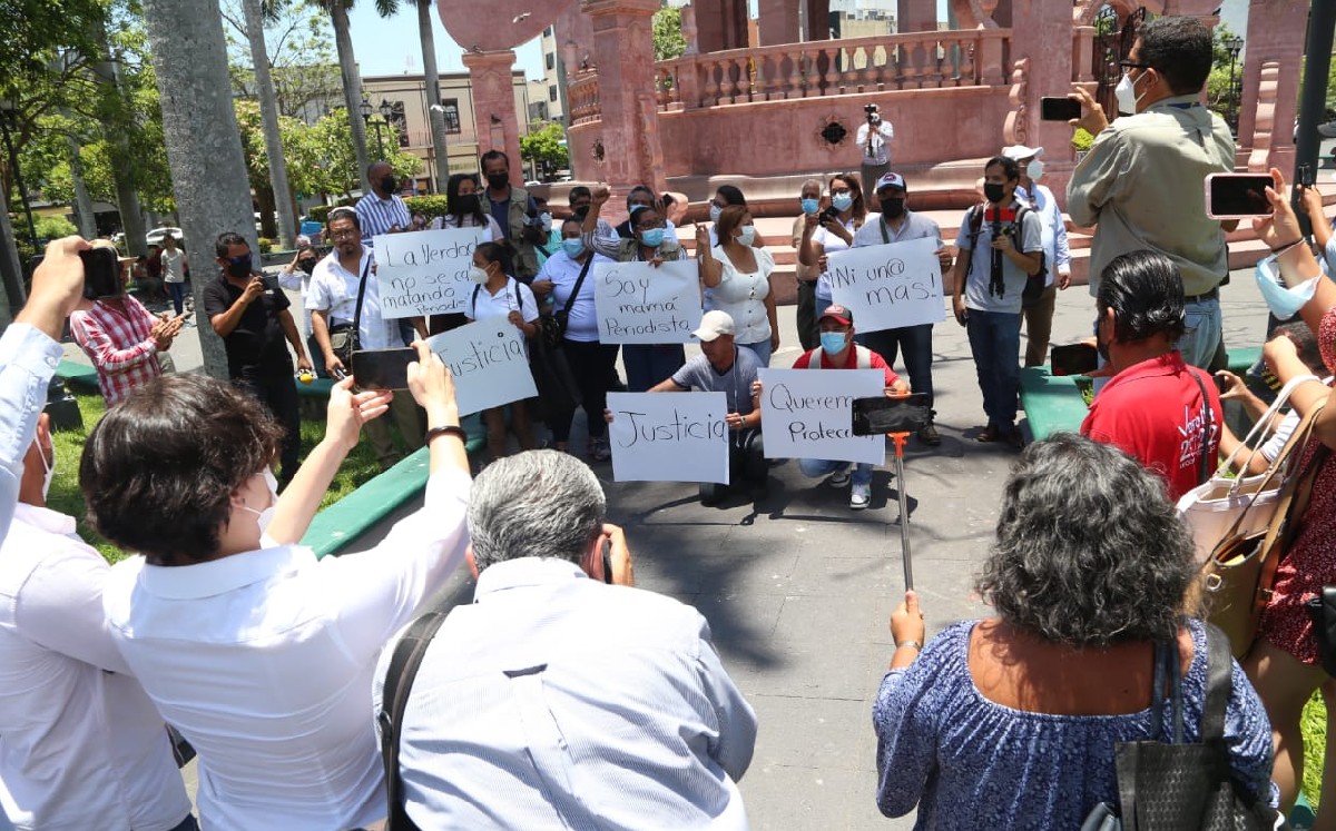 Por otra parte, otros periodistas se manifestaron en la zona sur de la entidad, donde caminaron desde la Plaza de Armas hasta la calle Colón.