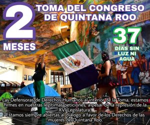 Erika Cornelio, integrante de la RFQ indicó que, este miércoles se cumplieron dos meses de la toma de la sede del edificio del Poder Legislativo. Dijo que las negociaciones con los legisladores se encuentran estancadas y sin avance alguno.
