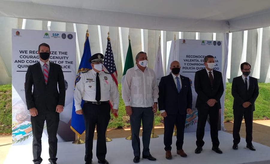 A la entrega de reconocimientos acudieron el Agregado Jurídico del FBI, Joseph González; representantes de las Fuerzas Armadas y autoridades de los ayuntamientos de Benito Juárez y Solidaridad.