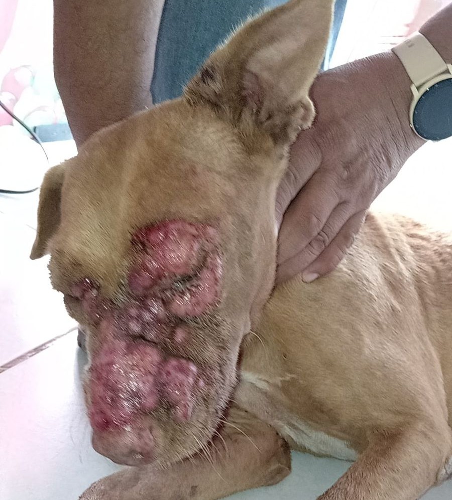 La perrita presenta quemaduras en la cabeza y en el lomo, así como diversos golpes en otras partes del cuerpo.