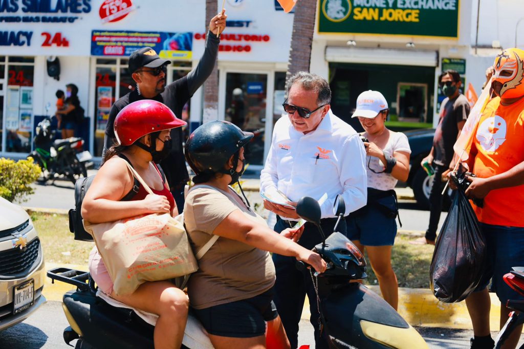 Así lo señaló el candidato de Movimiento Ciudadano (MC) a gobernador de Quintana Roo, José Luis Pech Várguez, durante su segundo día consecutivo de actividades de campaña en la isla de Cozumel, en el que de nueva cuenta estuvo acompañado de la candidata a diputada de MC por el Distrito XI, Vivien Withington, y ahora también por el delegado estatal del partido naranja, Jacobo Cheja.