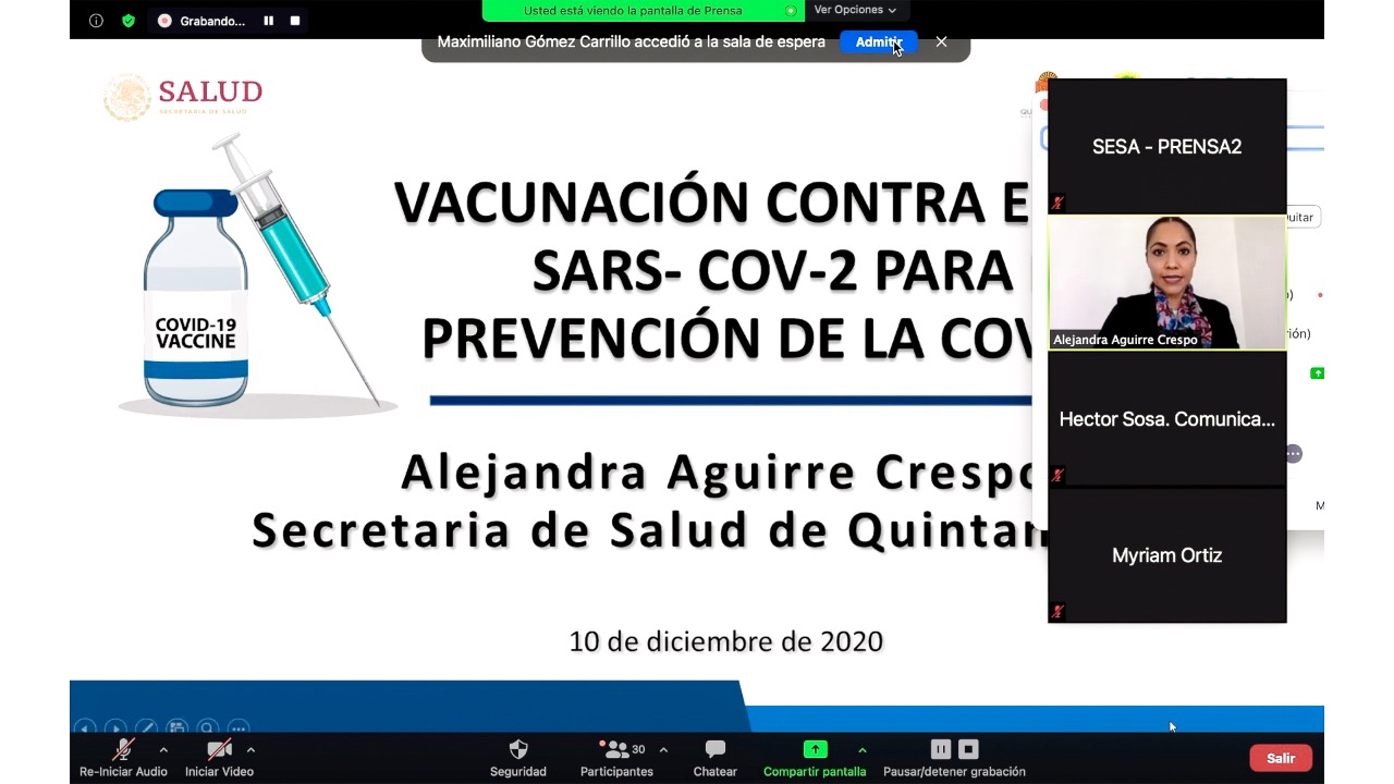 Chetumal, Q. Roo, Jueves 10 de Diciembre del 2020, poderycrítica.- Al dar a conocer los avances en los acuerdos para el acceso a vacunas contra el virus SARS-COV-2, la Secretaria de Salud Alejandra Aguirre Crespo pidió a la población prudencia y continuar las medidas de higiene pública ya que pasarán varios meses hasta que las distintas vacunas estén disponibles para todos los grupos poblacionales.