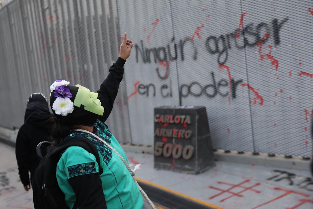 Las feministas realizaron pintadas con consignas contrarias al político y colgaron cartulinas en las instalaciones del Tribunal donde se podía leer «Ningún agresor en el poder», «Morena encubre violadores», entre otras leyendas.