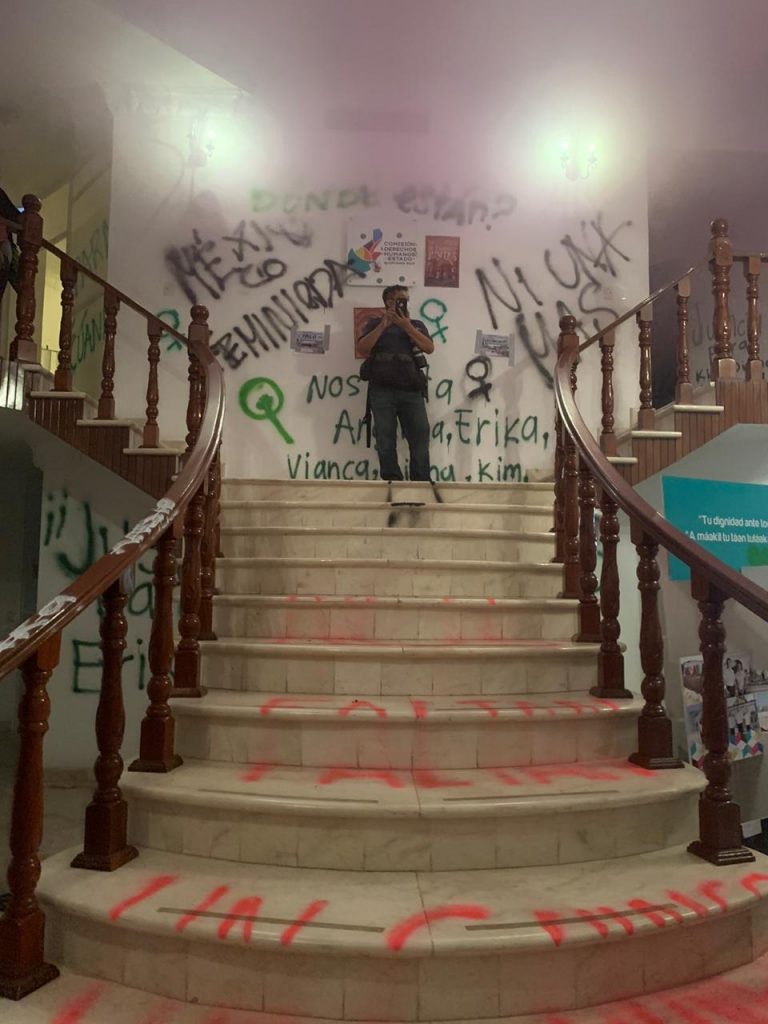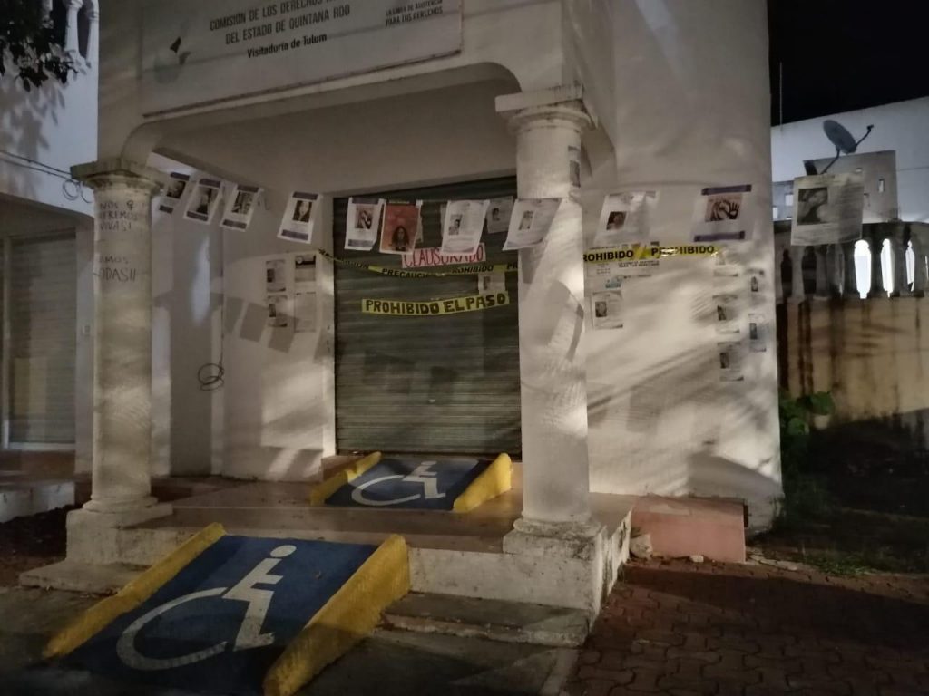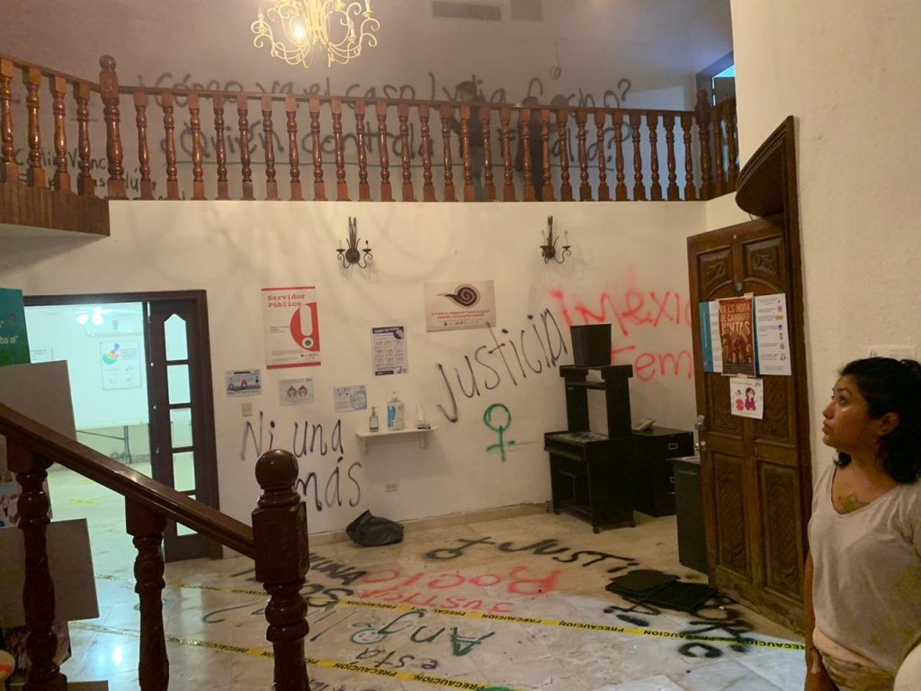 La tarde de ayer, los edificios de la CDHEQROO en Chetumal, Tulum y Cancún, fueron pintados durante la toma simbólica de las instalaciones, como una forma de sumarse a las protestas en otras entidades del país contra la violencia de género.
