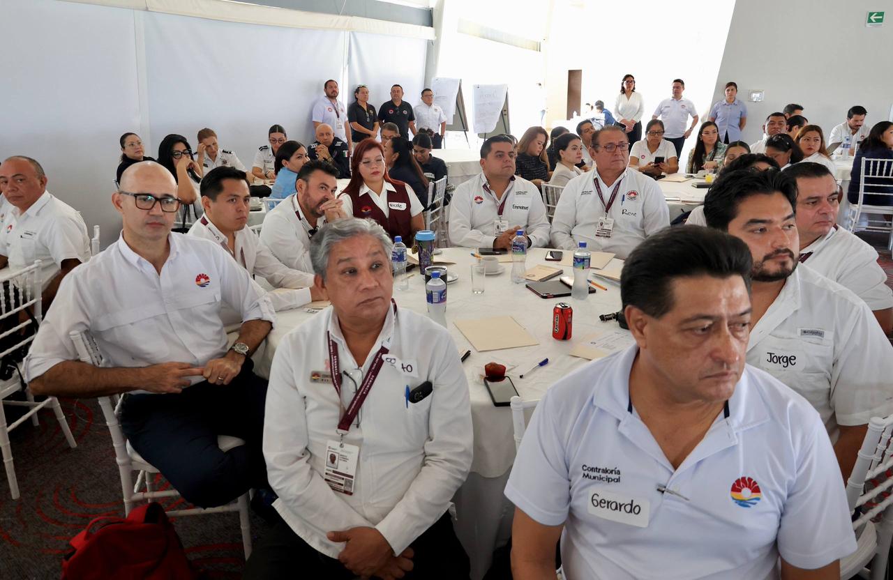 Como parte del taller durante todo el día, los servidores públicos trabajaron en mesas específicas para analizar 10 problemáticas recurrentes que han hecho llegar los habitantes a la autoridad a través de varios mecanismos de participación, tales como: inseguridad, manejo de basura y residuos, movilidad, calles y pavimentación, alumbrado público, falta de espacios públicos, adicciones, encharcamientos y drenaje, asentamientos irregulares y trámites burocráticos, a partir de una pregunta común que fue: “¿Para qué llegue al puesto?”.