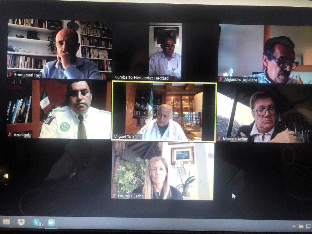 Ciudad de México, mayo 16.- El secretario de Turismo del Gobierno de México, Miguel Torruco Marqués, sostuvo anoche tres reuniones virtuales de trabajo: con los miembros de la Cámara Nacional de Aerotransportes (Canaero); de la Confederación de Cámaras Nacionales de Comercio, Servicios y Turismo (Concanaco-Servytur); y con las alcaldesas y alcaldes de Pueblos Mágicos de la región sur-sureste del país.