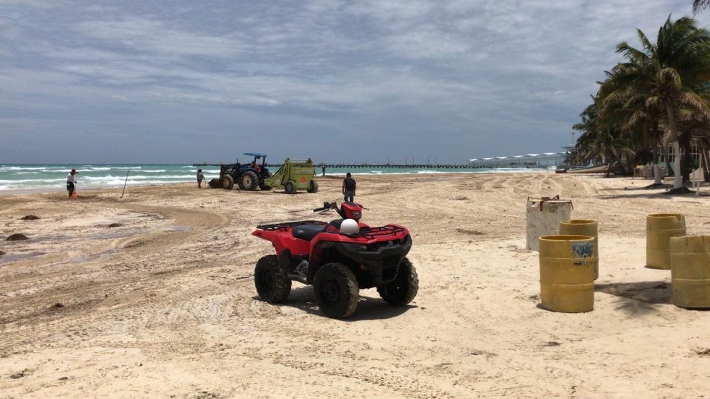 Respecto a la incorporación a estas labores de la empresa sargacera Manufacturas Industriales DP, S.A. DE C.V, que fue contratada por la Comuna para instalar una barrera contenedora de sargazo de 2.5 kilómetros de barreras para la contención y redirección del alga marina, ésta se encuentra realizando acciones preliminares, en tanto la Capitanía de Puerto aún no autoriza la entrada de embarcaciones, “sin embargo, nos apoyan en línea de playas en la limpieza de la mismas”, aseveró el directivo.