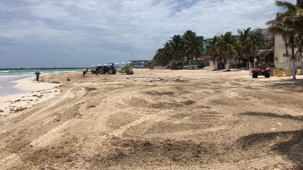 Playa del Carmen, Q. Roo, Domingo 07 de Junio de 2020, poderycrítica.- La depresión tropical “Cristóbal, arrastró varias toneladas de sargazo a la línea de costa del estado, afectando también las playas de Solidaridad, por lo que de inmediato, la presidenta municipal Laura Beristain Navarrete, instruyó retirar el alga para evitar que se acumule en las costas.