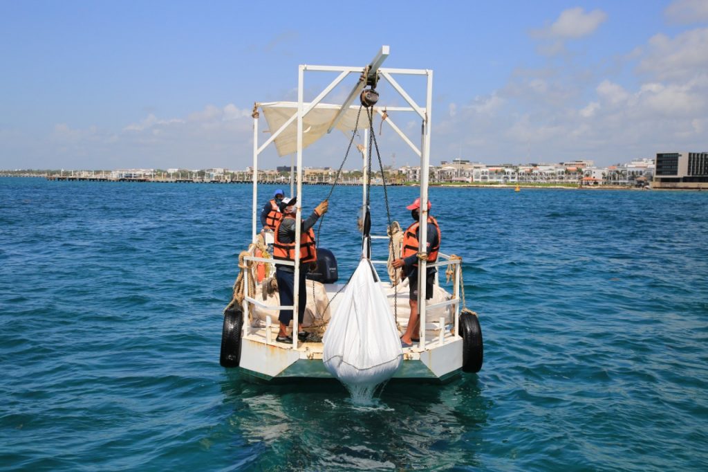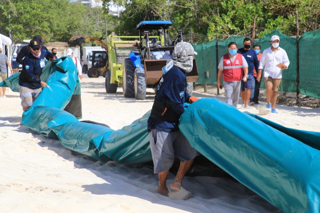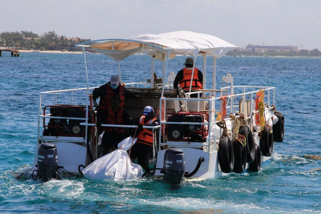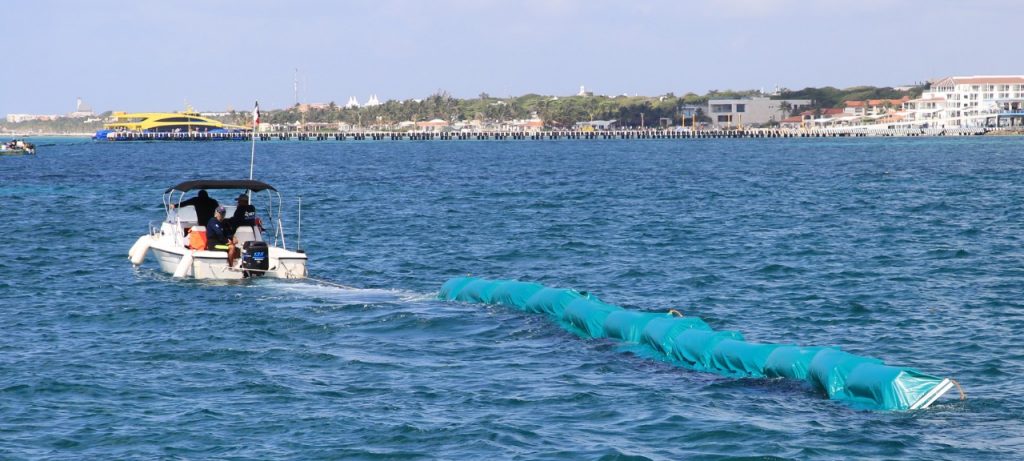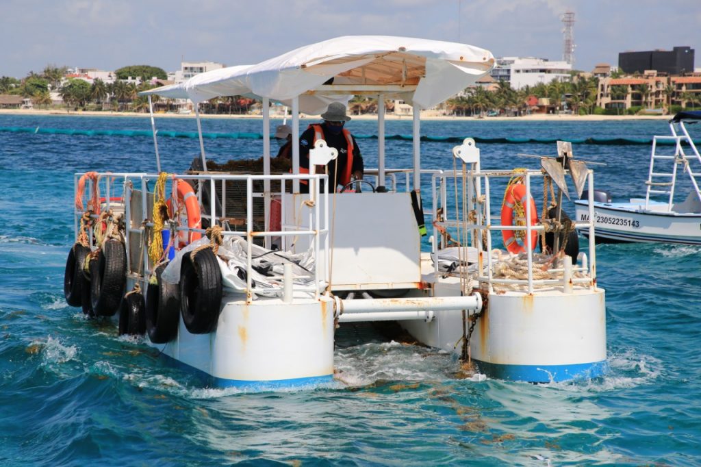 En tanto concluye la instalación, desde el primero de junio comenzaron las labores de recolección del alga en el mar, con dos embarcaciones sargaceras con capacidad de retirar diariamente alrededor de 200 toneladas, es importante mencionar que después de ser llevadas a la orilla en embarcaciones de menor calado, son trasladadas a su destino final en el relleno sanitario.