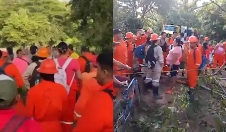 Los inconformes exigieron la presencia de los directivos de la compañía antes de permitir el paso de los trabajadores. Para impedir la circulación, los habitantes colocaron una cuerda, troncos y ramas de árboles en la vía, generando una barrera que obstaculiza el tránsito.