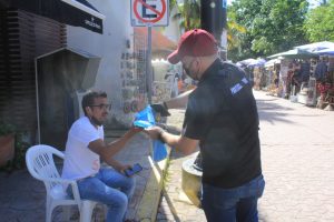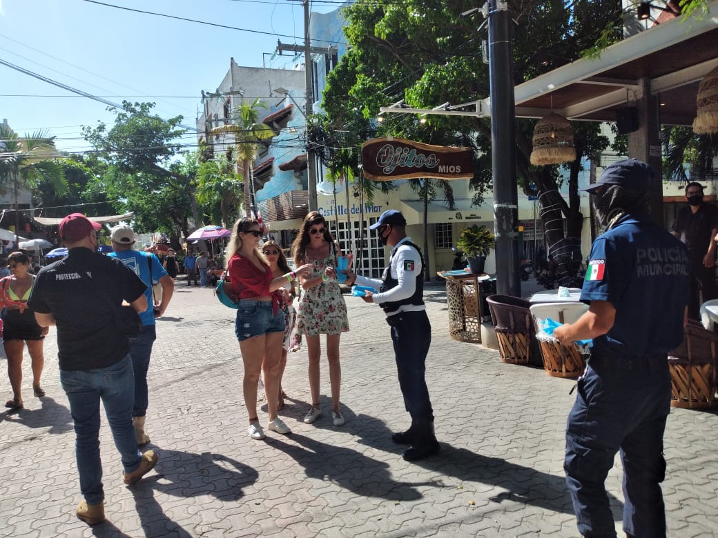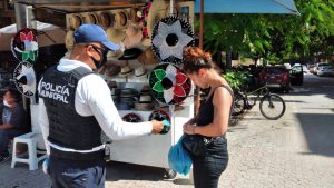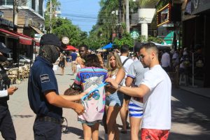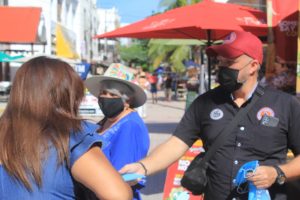 Playa del Carmen, Q.Roo, Miércoles 06 de Enero de 2021, poderycrítica.- El gobierno de Laura Beristain Navarrete, a través de la Secretaría de Seguridad Pública y Tránsito, repartió 500 cubrebocas sobre la Quinta Avenida y brindó información en puntos turísticos y de mayor afluencia, sobre su uso obligatorio.