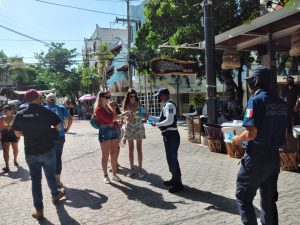 El comandante Jorge Robles Aguilar, precisó que se realizan recorridos de forma periódica en la ciudad con el fin de difundir el llamado a la conciencia de los solidarenses y turistas, para no relajar los protocolos de seguridad sanitaria.Con estas acciones, los cuerpos policiacos se suman al trabajo en conjunto de exhortar a la ciudadanía a portar el cubrebocas, usar gel antibacterial y mantener sana distancia, para evitar que crezcan los contagios por COVID en el municipio.
