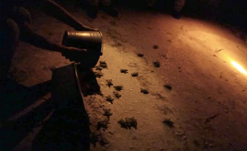 De inmediato avisaron a las autoridades arribando al lugar personal de la Policía Ecológica y voluntarios del campamento Tortuguero; los cuales instalaron la protección a los pequeños quelonios para que buscaran el camino al mar.