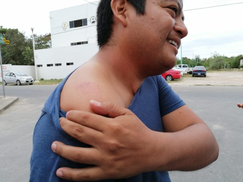 Fue en los semáforos de la avenida Insurgentes con Juárez donde realizaban un espectáculo de danza los estudiantes y de repente aparecieron elementos de la Policía Quintana Roo y sin decir más comenzaron a retirarlos, por lo que él tuvo que intervenir para evitar lo que consideró un atropello.