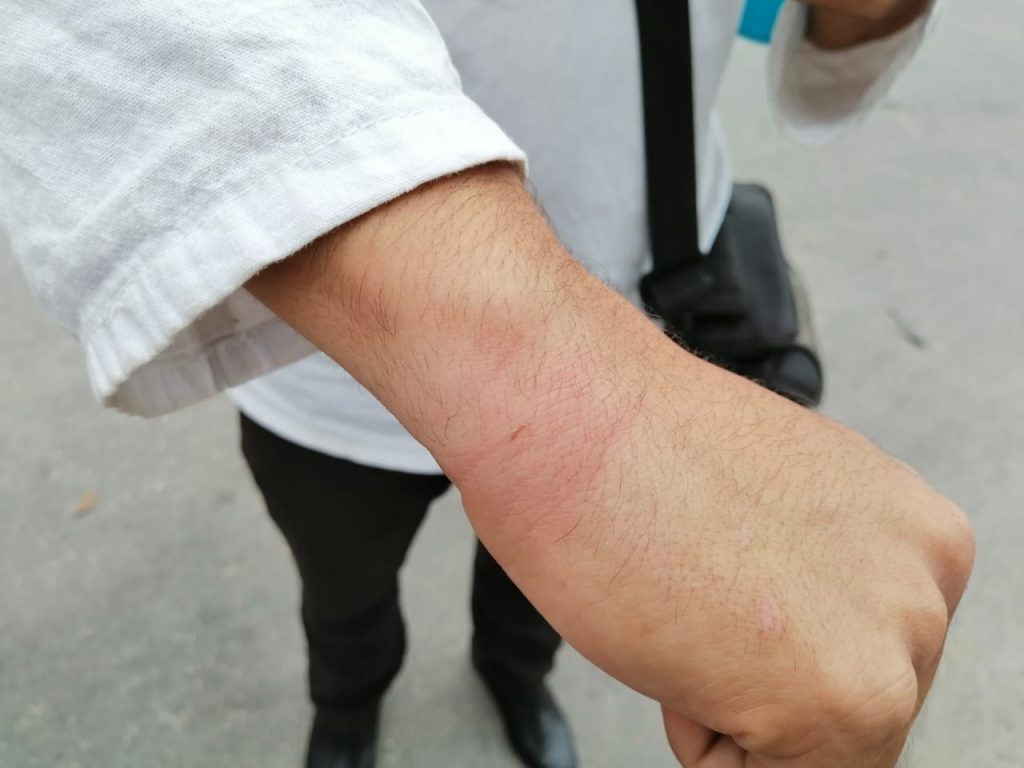 El argumento de los policías es que no se contaba con permiso pero comenzaron a empujar a los estudiantes y se hizo de palabras con los agentes de seguridad, quienes en represalia intentaron someterlo, sin embargo no se dejó porque no había nada malo en la actividad que realizaban.