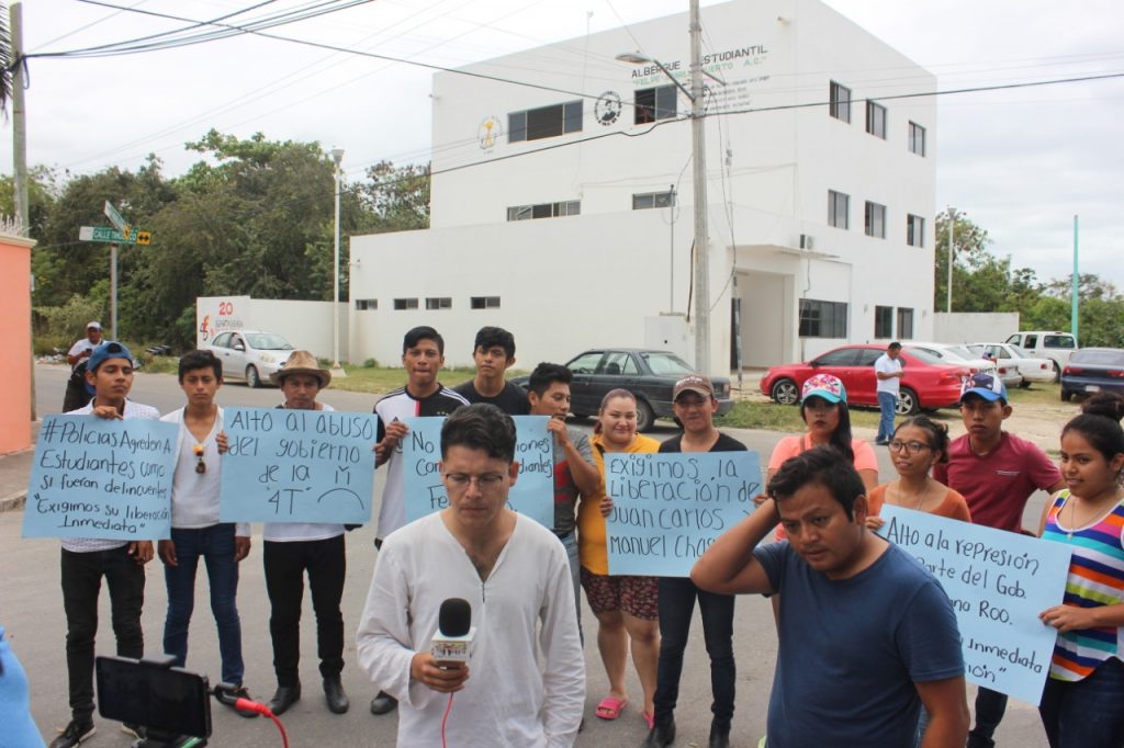 Chetumal.- El director de un albergue estudiantil fue detenido cuando acompañaba a unos estudiantes a realizar un espectáculo callejero en la avenida Insurgentes, para recaudar fondos para sus estudios. Se requirieron de más de 15 policías para someterlo y esposarlo, quienes además maltrataron a los alumnos y cargaron con el vocero de la organización.