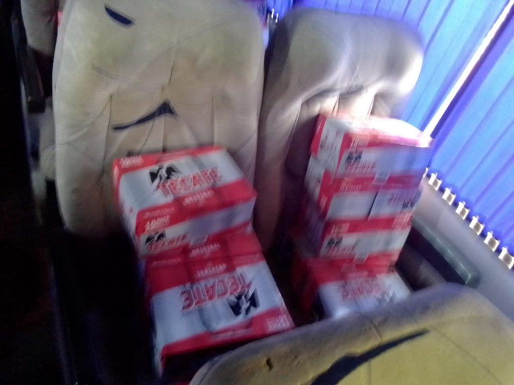 POLICÍAS DE COMALCALCO ASEGURAN UN AUTOBUS CARGADO DE CERVEZAS