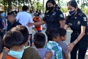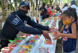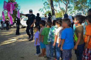 Solidaridad, Q. Roo, Jueves 07 de Enero de 2021, poderycrítica.- Con motivo de la siente celebración del Día de Reyes, policías de Solidaridad llevaron regalos y alegría a los niños de la comunidad Los Faisanes.