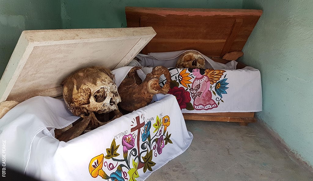 Visitantes locales, nacionales y extranjeros se detienen ante las figuras coloridas hechas de cartón, periódico y madera reciclada, símbolos de una comunidad que honra a sus muertos con creatividad y respeto. En Pomuch, los difuntos no descansan en el olvido, sino que siguen siendo parte de la vida cotidiana.