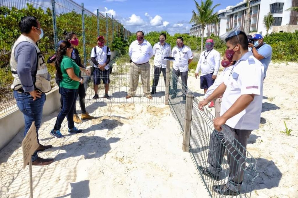En un trabajo conjunto entre la dirección de Desarrollo Urbano y Medio Ambiente, encabezada por Nivardo Fernández Martínez y la Tortugranja dirigida por Deline García Canto, se realizó un recorrido por las instalaciones donde colocaron los seis nidos de tortuga para corroborar que los métodos aplicados sean los correctos y supervisar el buen manejo de éstas emblemáticas especies.