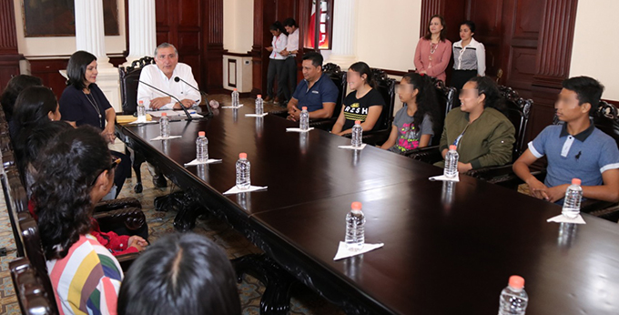 El mandatario recibió este lunes en Palacio de Gobierno a los integrantes del ensamble comunitario, que encabezados por su maestro Andrés Garabita, agradecieron el respaldo brindado por el Gobierno del Estado para viajar en mejores condiciones al país europeo y mantener una estadía más placentera y decorosa.