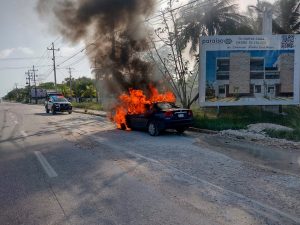 Playa del Carmen, Q. Roo, Lunes 13 de Septiembre de 2021, poderycrítica.- Un vehículo particular se incendió en el bulevar Playa del Carmen sin que se reporten lesionados, únicamente la pérdida total en la unidad que sufrió una falla mecánica.