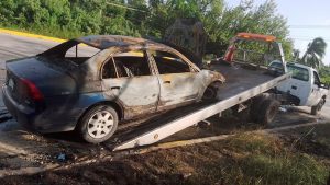 Al orillarse sobre el acotamiento y observar de dónde provenía el ruido observó que su vehículo comenzaba a sacar humo y en cuestión de minutos a incendiarse por lo que solicitó la intervención de bomberos.
