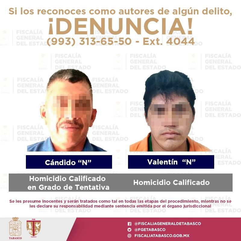 PODER Y CRÍTICA | Villahermosa, Tabasco.- La Fiscalía General del Estado (FGE) de Tabasco aseguró a seis personas como presuntos responsables de los delitos de homicidio, violación, robo, violencia familiar y lesiones calificadas, en los municipios de Cárdenas, Centro, Tacotalpa y Teapa.