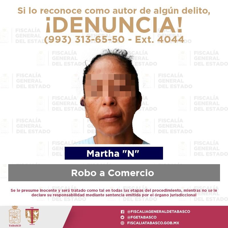 Por su presunta responsabilidad penal en un hecho de robo a comercio, fue detenida Martha “N” sobre la carretera Villahermosa-Frontera, a la altura de la ranchería Medellín y Pigua.