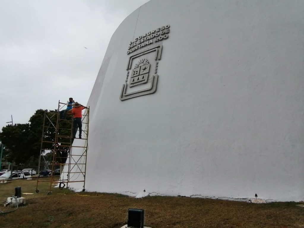 Chetumal, Q. Roo, viernes 12 de marzo de 2021, poderycrítica.-  Esta mañana iniciaron los trabajos de mantenimiento y limpieza del edificio del Poder Legislativo con sede en Chetumal, luego de que fuera vandalizado  por la Red Feminista Quintanarroense (RFQ).