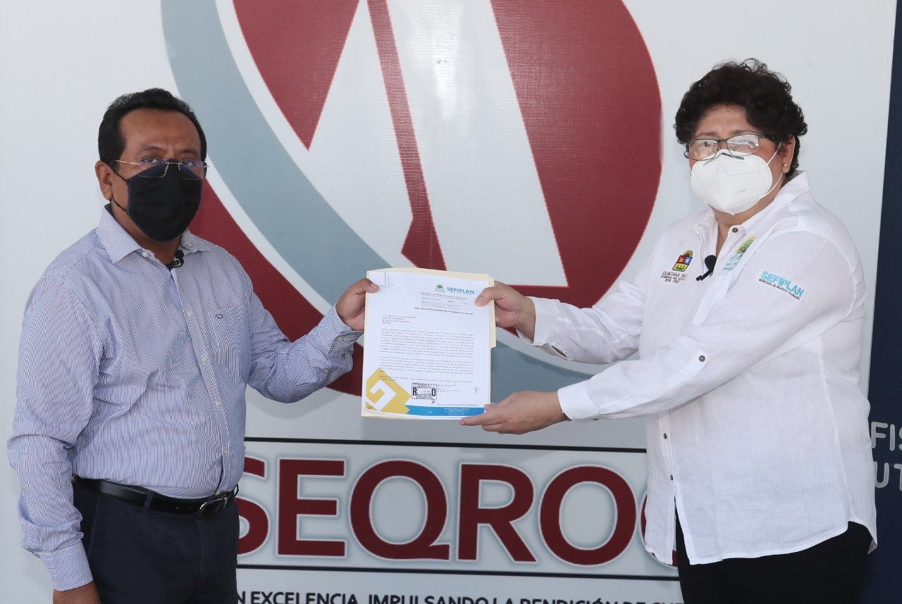Chetumal, Q. Roo, Viernes 12 de Junio de 2020, poderycrítica.–  En cumplimiento a lo dispuesto en la Constitución Política del Estado de Quintana Roo, la titular de la Secretaría de Finanzas y Planeación (SEFIPLAN), Yohanet Torres Muñoz hace entrega en tiempo y forma, y siguiendo los protocolos de higiene por la situación sanitaria del COVID-19 al Auditor Superior del Estado, L.C.C. Manuel Palacios Herrera; la Cuenta Pública de la Entidad Federativa del ejercicio fiscal 2019.
