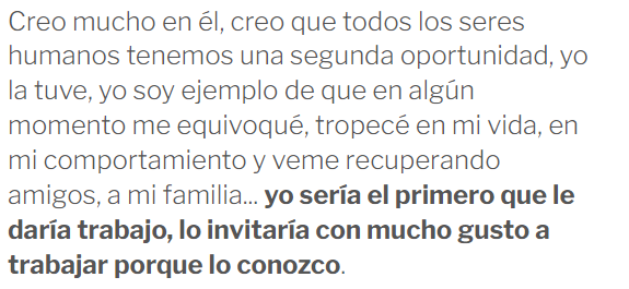 Durante una entrevista que el productor de televisión concedió para De Primera Mano lamentó todo lo que está viviendo su amigo y confesó que está dispuesto a ofrecerle trabajo cuando salga de prisión. Y es que esta pena tendrá un impacto imborrable en la trayectoria del actor, por lo que probablemente tenga problemas para retomar su vida cuando abandone el centro donde está recluido.