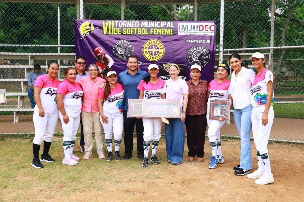 PODER Y CRÍTICA | REDACCIÓN | ”El deporte no solo mejora la salud, sino que también contribuye al bienestar emocional y fomenta un sentido de comunidad y pertenencia”, afirmó la alcaldesa Aura Medina Cano, al premiar este sábado a equipos y deportistas sobresalientes del VII Torneo de Softbol Femenil, desarrollado en el renovado Centro Recreativo de Atasta.