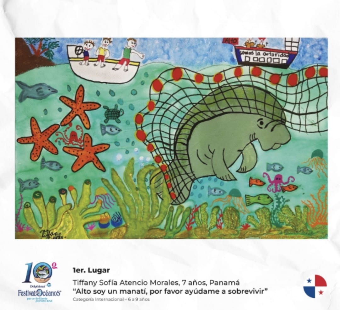 1er Lugar – Tiffany Sofía Atencio Morales, “Alto soy un manatí, por favor ayúdame a sobrevivir”, 7 años, Panamá