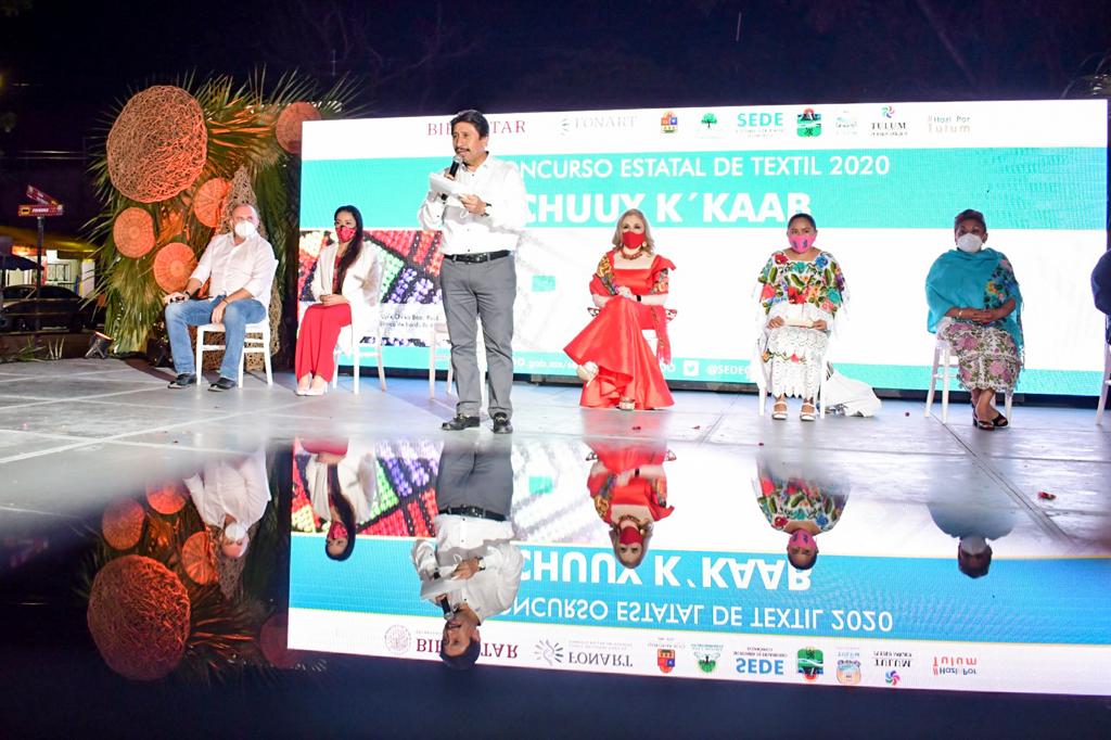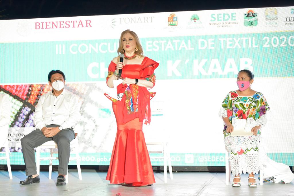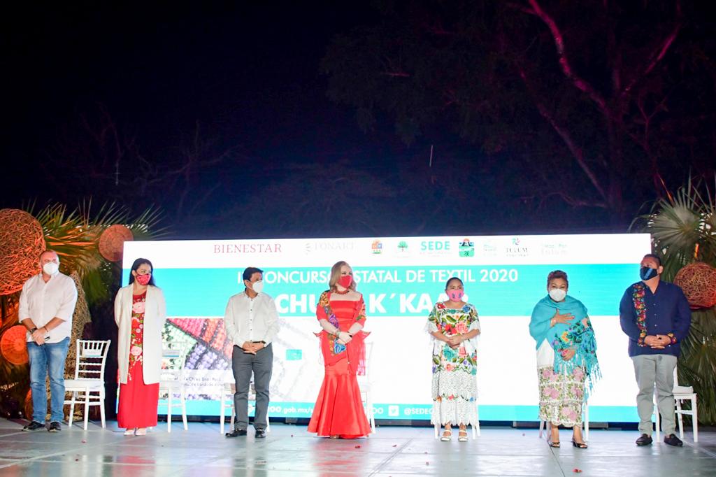 Tulum, Q. Roo, miércoles 09 de Diciembre de 2020, poderycrítica.- Tulum vivió la noche del 08 de diciembre, la III Premiación del Concurso Textil Chuy K´kaak (Hecho a mano), en donde Lenny Uh Abán, de Chanchén Primero, fue galardonada con el primer lugar en Quintana Roo. Bajo todas las medidas de higiene, salud y sana distancia, la secretaria de Desarrollo Económico del Estado, Rosa Elena Lozano Vázquez y el presidente municipal de Tulum, Víctor Mas Tah, encabezaron esta ceremonia en la que presentaron la marca “Hecho en Tulum” y posteriormente disfrutaron la pasarela de la marca Moda Maya.