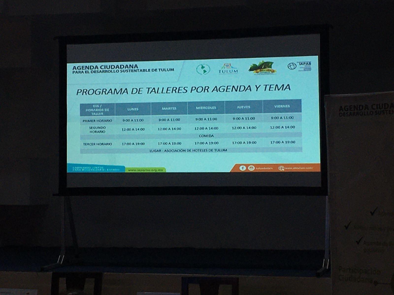 Ángeles Domínguez García explicó la metodología que seguirán en las etapas faltantes, para poder programar los talleres por agenda y tema, donde las mesas de trabajo iniciarán de la 9:00 de la mañana hasta las 19:00 horas, en las oficinas de la Asociación de Hoteles de Tulum.
