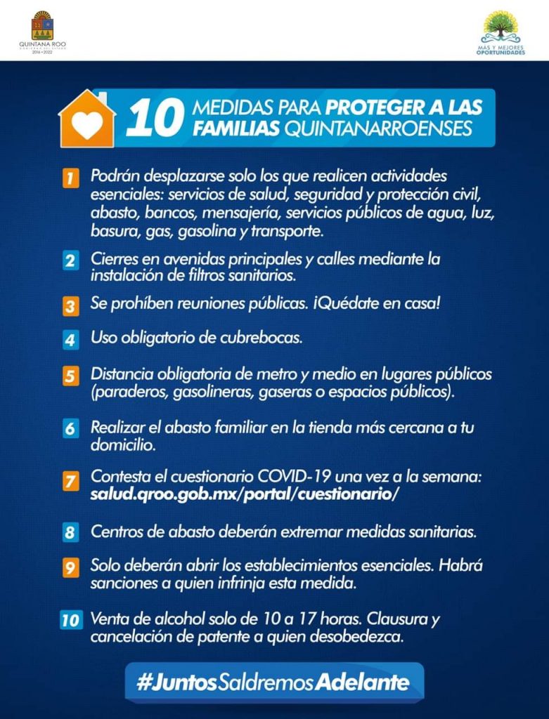 El gobernador de Quintana Roo explicó que el Plan Juntos Saldremos Adelante contempla la estrategia ¡Quédate en casa! para desacelerar el ritmo de contagio por coronavirus, salvar vidas y atender las necesidades de la gente con 5 apoyos para tu tranquilidad: Agua, Luz, Gas, Alimentos y Salud.