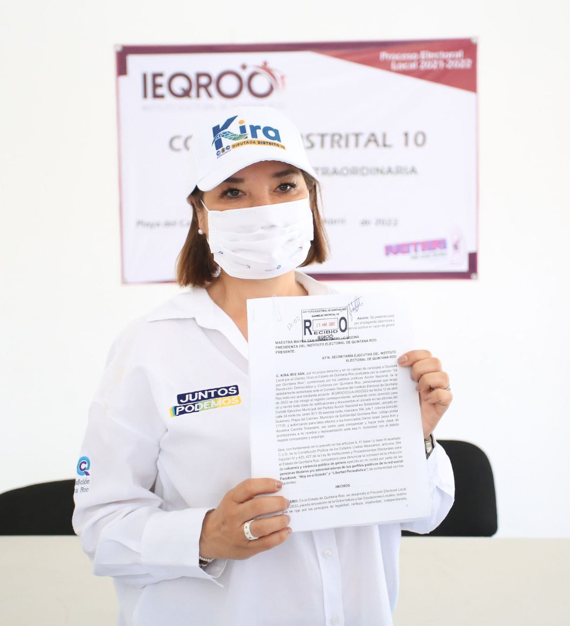 PODER Y CRÍTICA | REDACCIÓN | Por violencia política de género, Kira Iris, candidata de la coalición “Va por Quintana Roo” al Distrito 10, presentó una denuncia ante el Instituto Electoral de Quintana Roo, solicitando a las autoridades electorales que le den el debido seguimiento e integren la carpeta correspondiente y que generen los resultados que correspondan, emitiendo una sentencia, pero sobre todo que protejan el ejercicio de sus derechos políticos como mujer.