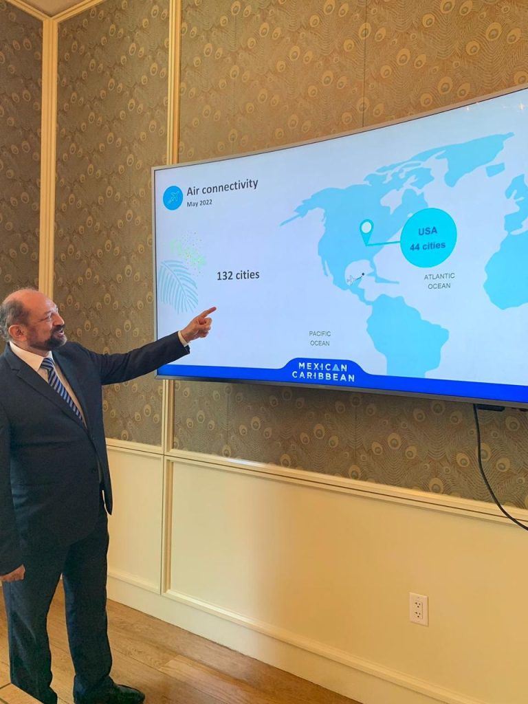 En esta presentación realizada durante un desayuno, se dio a conocer que en este año 60 aerolíneas conectan al Caribe Mexicano con 132 ciudades en 31 países a través de 95 mil vuelos, de los cuales 42,600 sólo son de Estados Unidos, resaltándose también que a dos años de la reactivación turística de Quintana Roo, desde junio de 2020, han arribado al destino más de 20 millones de visitantes.