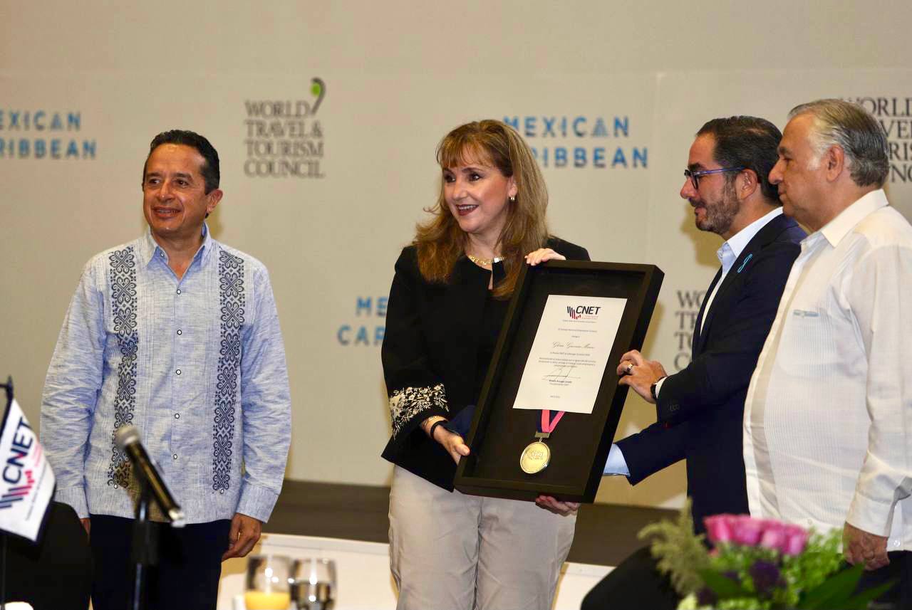 Gloria Guevara, presidenta de la WTTC, recibió la Presea del Consejo Nacional Empresarial Turístico (CNET) al liderazgo turístico 2020, el cual fue entregado por primera vez a una mujer.