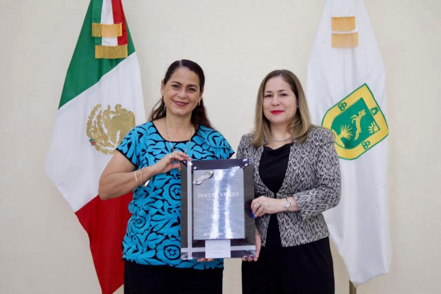 La presidenta del TSJE y del Consejo de la Judicatura, María Carolina Canto Valdés sostuvo una reunión con la directora general de la Filey, María Teresa Mézquita Méndez, con quien abordó temas relacionados con esta obra, la cual se presentará ante el público yucateco el próximo año durante esta importante muestra literaria, que tan solo en su edición 2024 recibió a más de 240 mil personas.