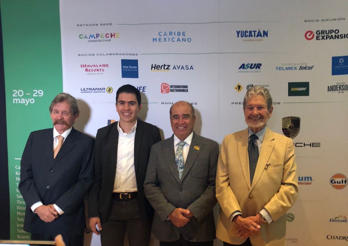 Con el ingeniero Enrique Vila, presidente de la Comisión Nacional Vintage en representación del Lic. Alfonso Oros Trigueros, Presidente de la FEMADAC, el licenciado Luis Silva y Gutiérrez, Presidente de la FMAAC, el ingeniero José Abed Presidente de la OMDAI-FIA México y el Mtro. Andrés Aguilar, sub Secretario de Turismo del Estado de Quintana Roo en representación del Gobernador Carlos Joaquín González, acompañando al licenciado Benjamín de la Peña Mora CEO y Fundador del RMM para dar los por menores de esta octava edición que comenzará el 20 de mayo en la ciudad de Cancún y culminará tras un recorrido por territorio yucateco en la Riviera Maya.
