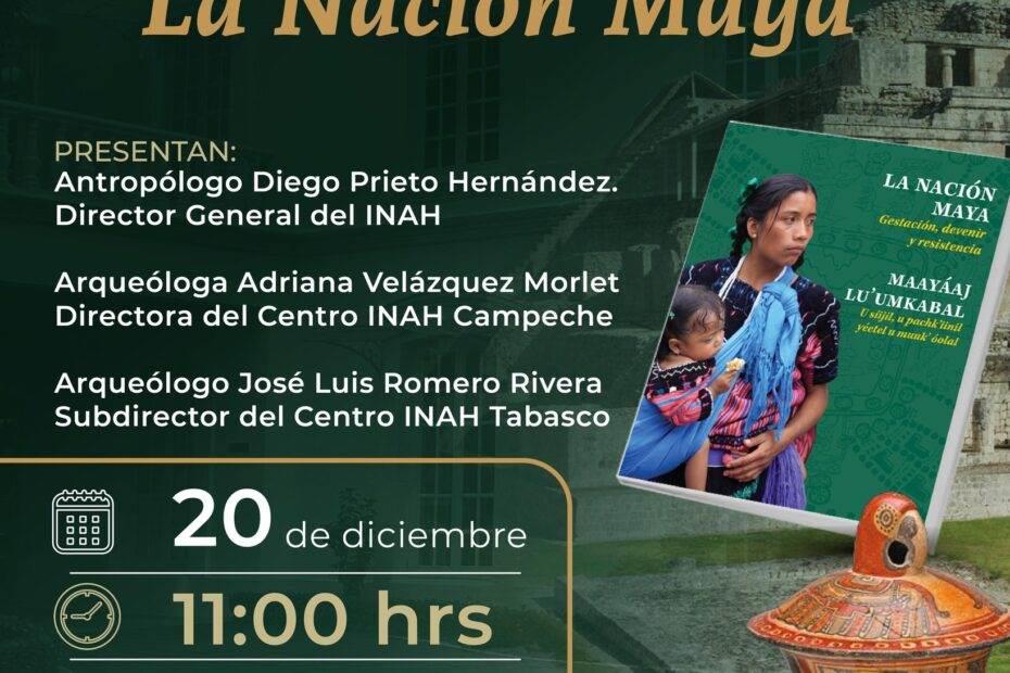 «Quiero invitar a todos y todos a la presentación del libro Nación Maya , que se va a realizar el viernes 20 de diciembre, a las 11:00 de la mañana, en el Centro Cultural Quinta Grijalva. Es la primera actividad literaria que se llevará a cabo en el nuevo recinto, y será una actividad de lujo porque estará aquí en Villahermosa el director general del INAH, el doctor Diego Prieto Hernández», señaló el mandatario.